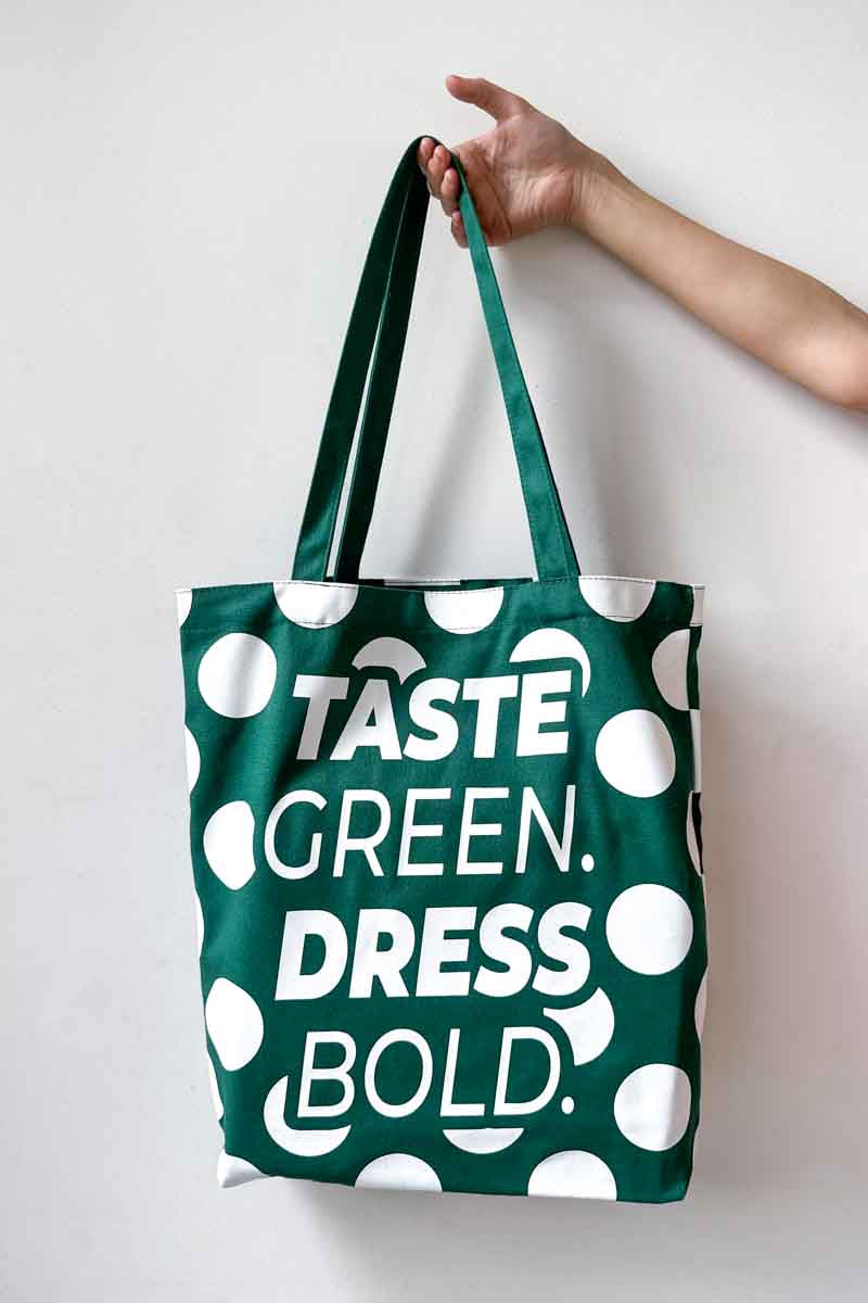 A statement in every sense, this limited-edition tote celebrates the vibrant fusion of Shiro and dogstar style. Adorned with bold polka dots and the the phrase "taste green, dress bold," it captures the spirit of the matcha-inspired collection—fresh, fearless, and full of personality. Spacious, sturdy, and made to stand out, it’s your perfect everyday carry for matcha runs, market strolls, and everything in between.