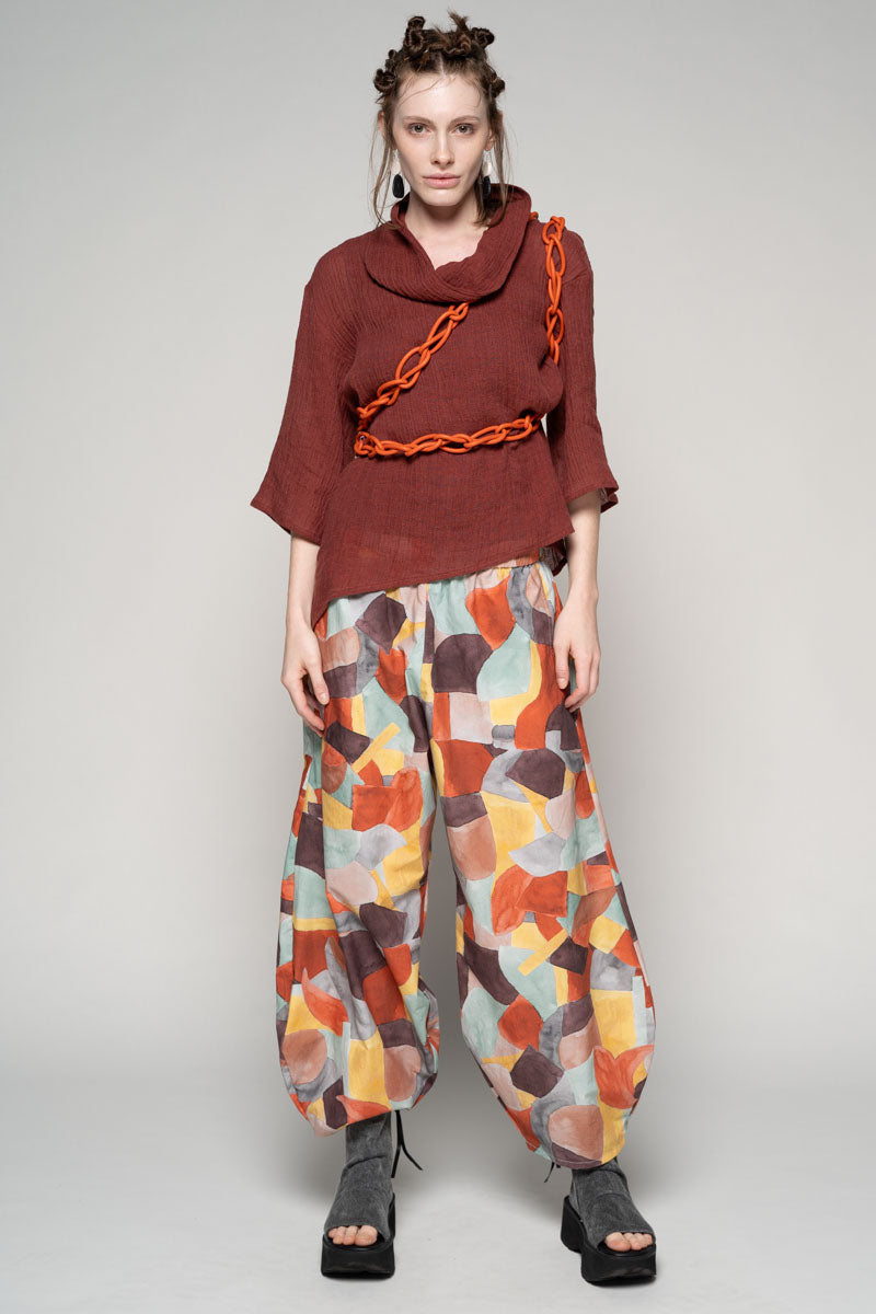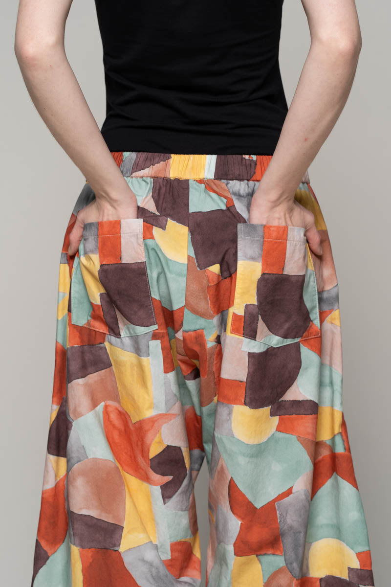 The Dream Pant truly embodies the perfect balance between casual and dressy, tailored and spacious, and serious yet playful. Its unique silhouette is achieved through unconventional seaming, both vertically from the elastic waistband and horizontally towards the hem. With internal pockets on each side and two contrasting patch pockets on the back, this versatile pant pairs perfectly with the Sasa Top for a effortless and lightweight summer time look.