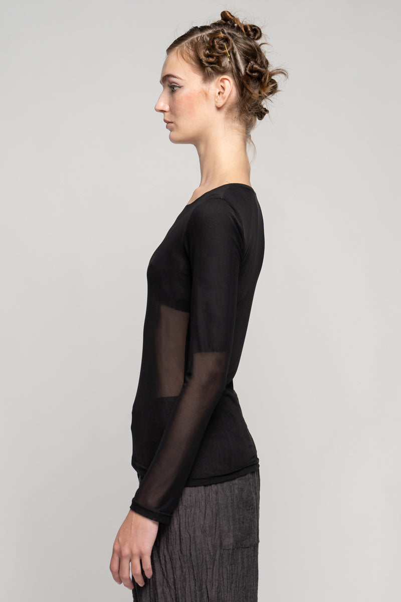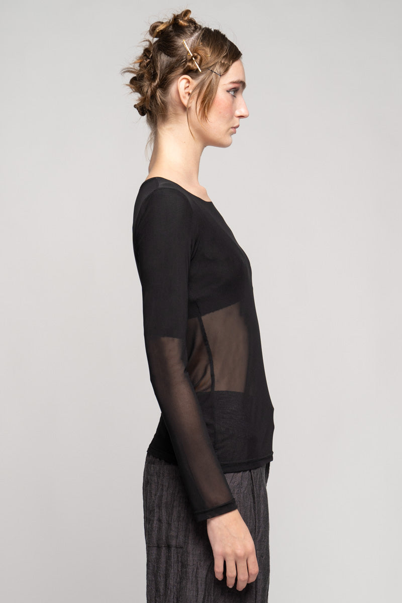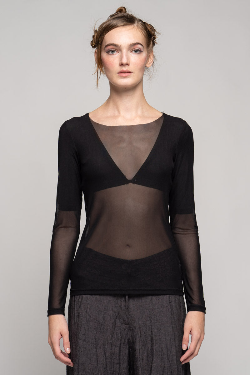Model is wearing Kuro top over the Kinu Mesh top in these photos