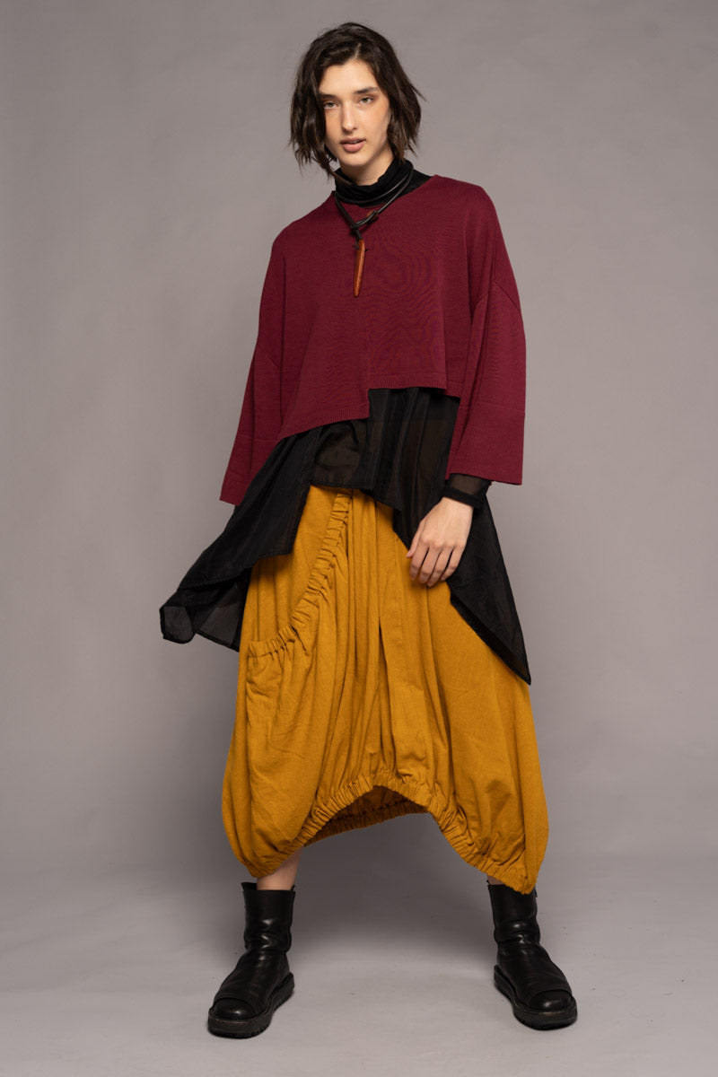 A lightweight layer of asymmetry to add flare to your outfits, the Kira Top is a must have for winter. The cropped look of the top paired with the asymmetry of the sides flatters your outfit creating an engrossing style like no other. You can layer the Kira Top on its own or pair it with the Yuki Drape Tunic and Zen Skirt to complete your winter wardrobe.