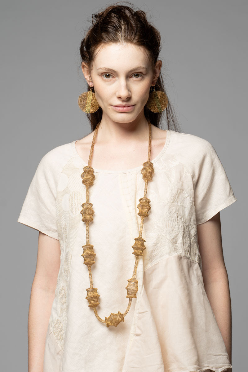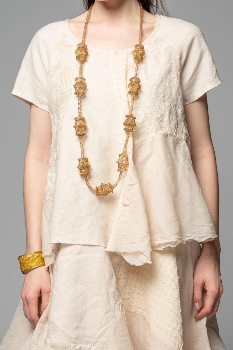 This necklace is made entirely by hand, stitch by stitch.
