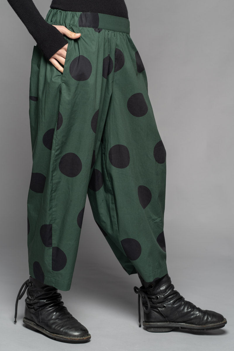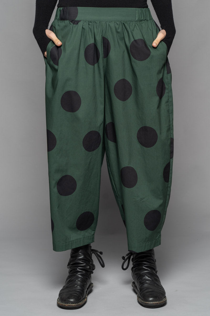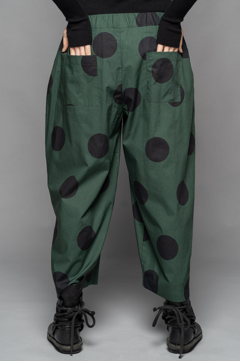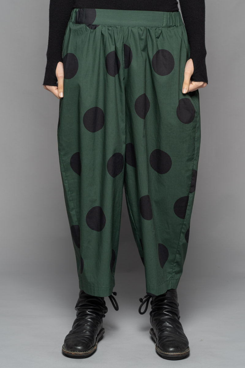 Step into winter style with the Mizu Gather Pants—boldly patterned with polka dots and designed to balance smart and casual with ease. These ankle-length pants feature a flat front, gathered back, and practical side pockets, making them both flattering and functional. Pair them with winter boots and a crisp button-up for a polished look, or style them with the Yoko High Neck Top and Tentou Puffer Jacket for a fashion-forward winter ensemble. A versatile essential, the Mizu Gather Pants bring playful sophistication to your cold-weather wardrobe.