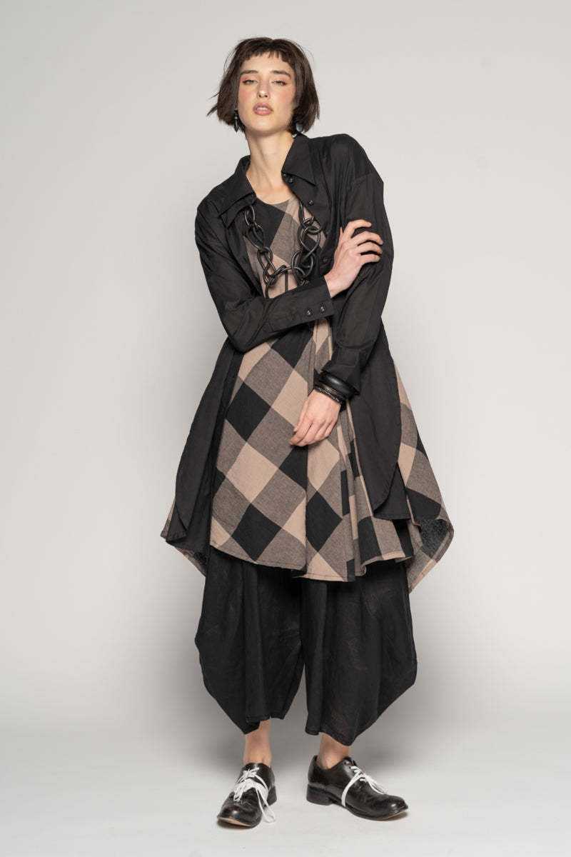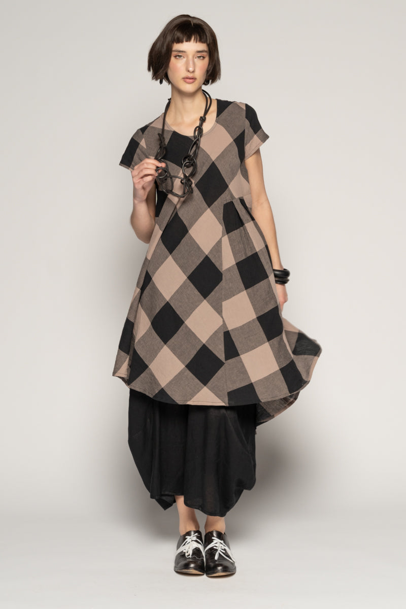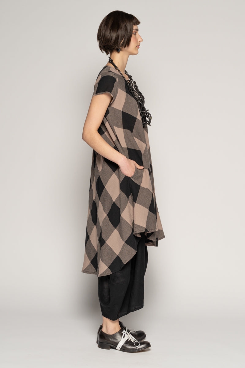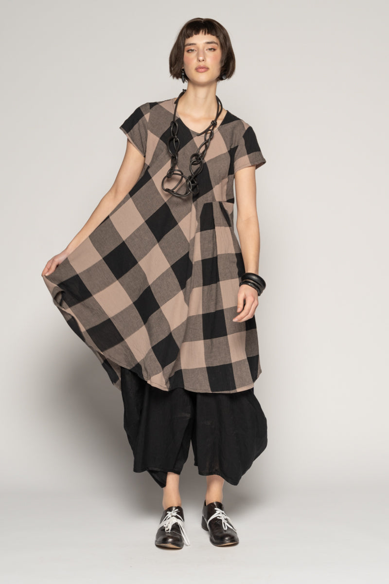 Light and effortless, the Oki Sun Dress moves with an easy swing. Cut in an airy linen/cotton blend, its generous A-line drapes into soft points at the sides, skimming the body rather than fitting it. A simple scoop neck and cap sleeves keep the line clean, while hidden pockets invite relaxed, everyday wear. Beautiful on its own and especially good layered over pants, it’s the kind of piece that slips on and quietly elevates the day.