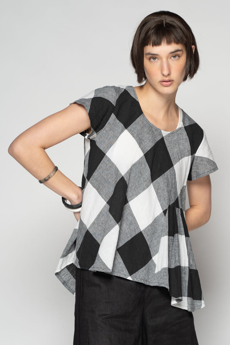 Quietly sculptural, the Oki Top brings an origami-like fold to everyday dressing. A striking side pleat adds movement and texture, while the open neckline and relaxed shape skim with ease. Cut in a breathable linen/cotton blend, it’s the piece you reach for all season—beautiful pressed or worn with a softly crushed finish.