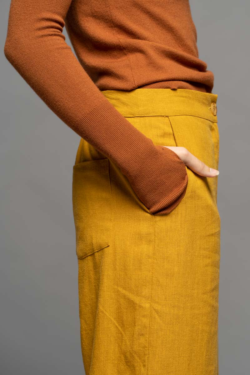 Immerse yourself in the fusion of casual and formal with the Shuffle Pants, where refined meets laid-back, and refined meets spirited. This unique tulip shape is brought to life through unconventional seams, stretching outward in both vertical and horizontal directions. Featuring internal side pockets and back pockets, these adaptable pants effortlessly complement the Kira Top, creating a delicate autumn ensemble.
