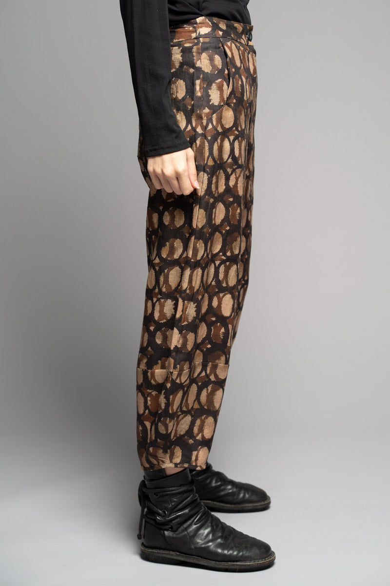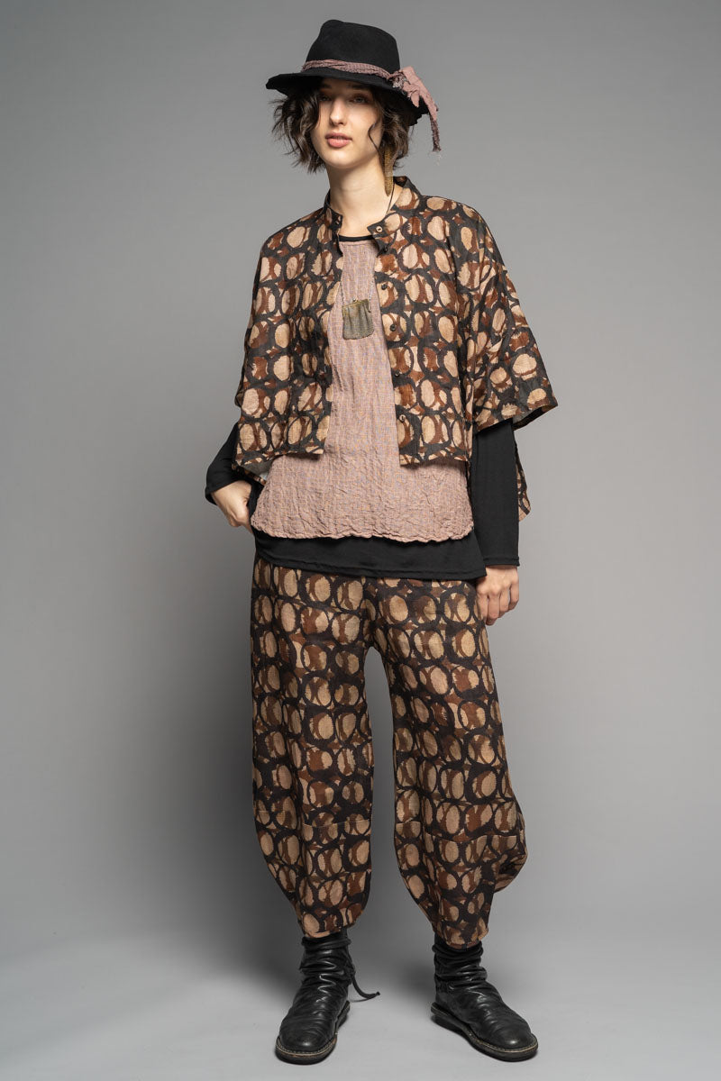 Indulge in the perfect blend of casual and formal with the Zen Pants Mocha, where tailored meets relaxed, and sophisticated meets playful. This one-of-a-kind silhouette comes to life with unconventional seams, stretching both vertically and horizontally. Complete with internal pockets on the sides and contrasting patch pockets in the back, this versatile pant pairs elegantly with the Sasa Top, creating a weightless look for Autumn.